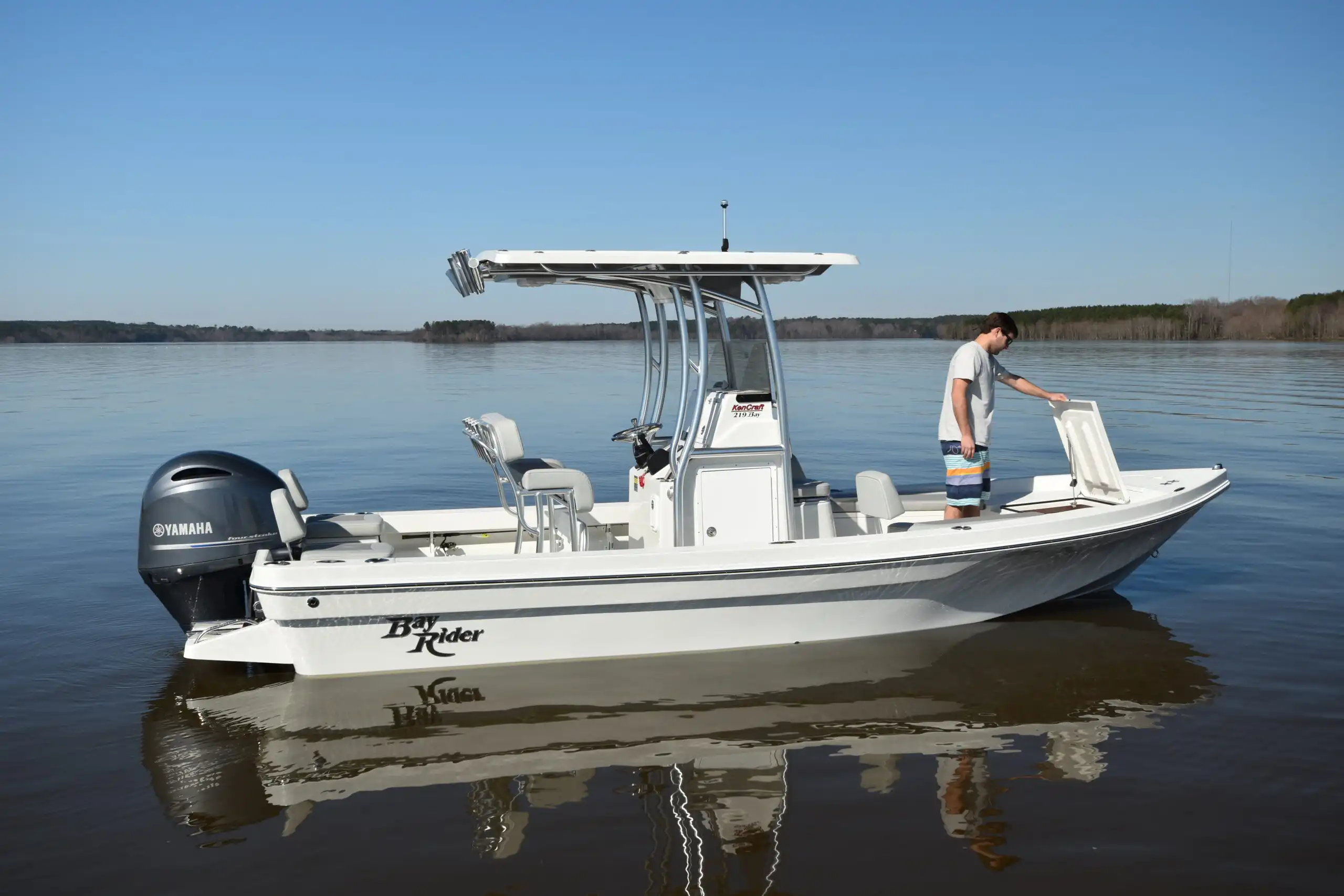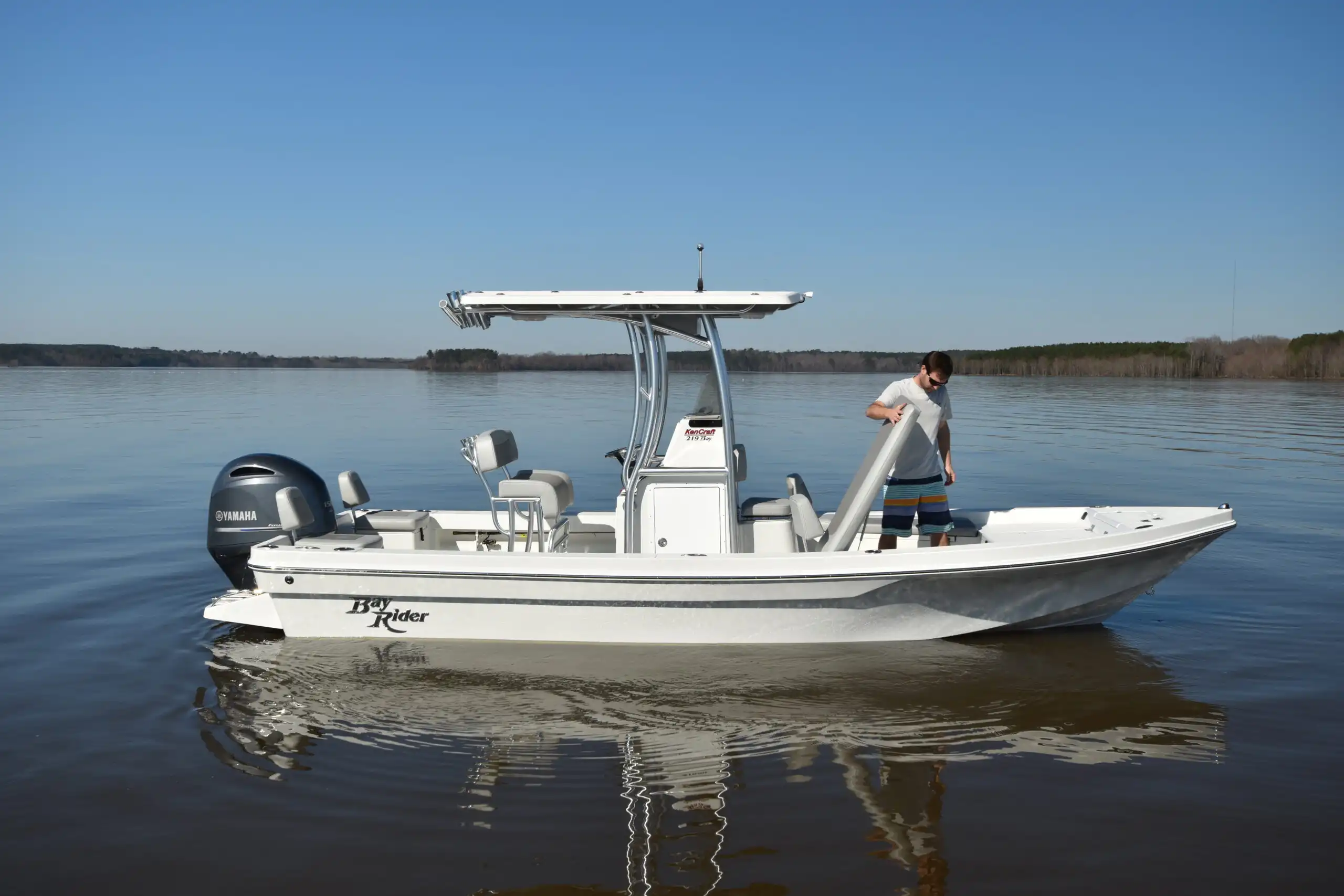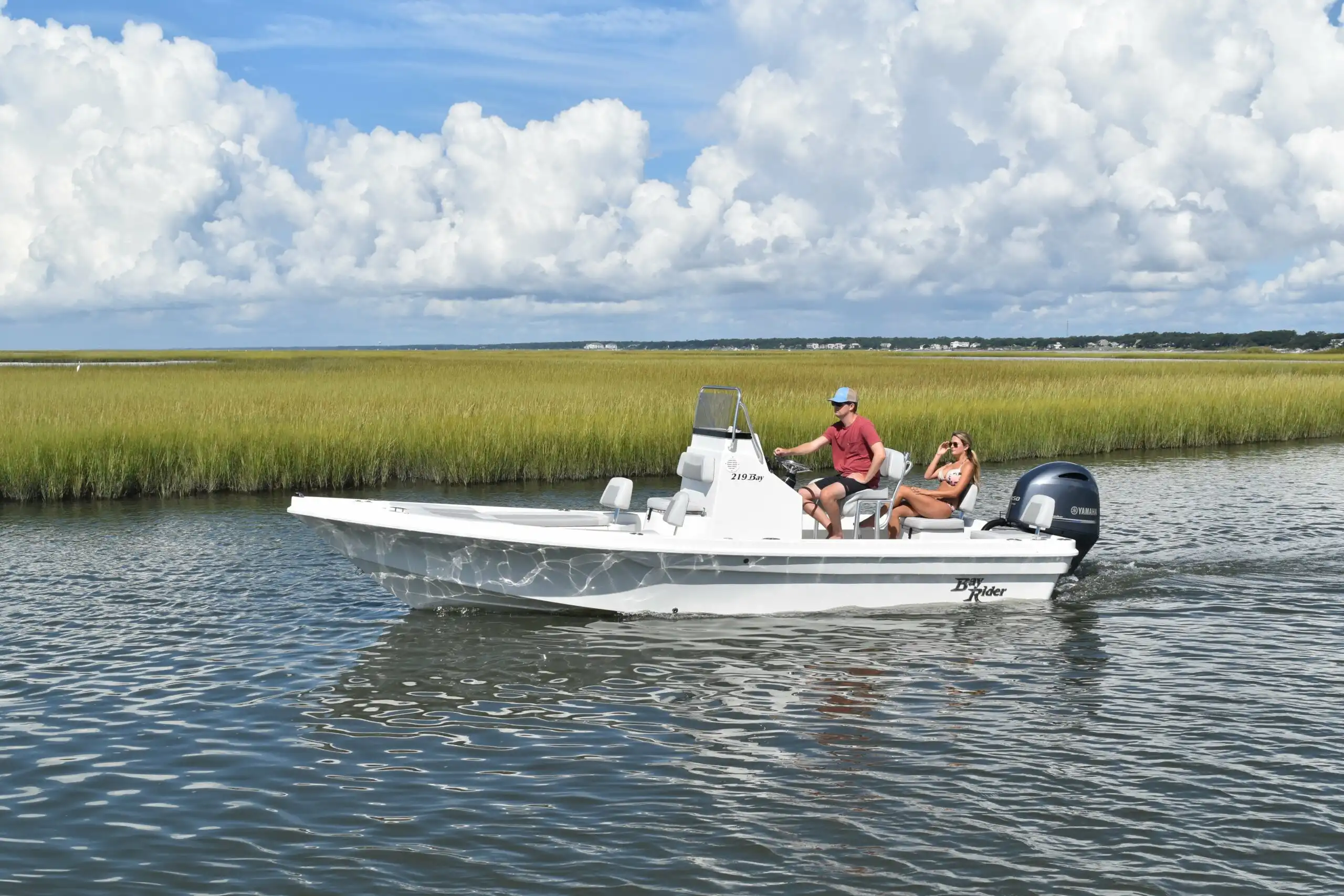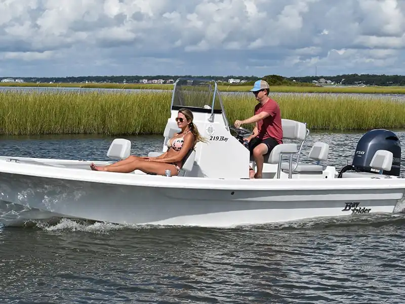 The Bay Rider 219 Bay is the Bay Rider's bay boat experience in the most compact form. The 219 features construction techniques and hardware not commonly found in boats of this size and provides a great platform for fishing in shallow water or going to the sandbar with friends and family.