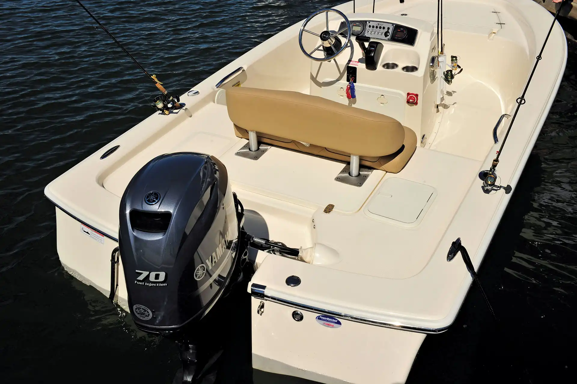 We’ve created a model ideal for any fisherman at any level, all on a dependable platform that runs great both inshore and offshore. The 177 Sport boasts many standard features that otherwise come as options on competitive models. With its flared bow, perfect for deflecting spray and keeping you dry while underway, it also has a comfortable beam of 7’3” for stability. Other standard features include an integrated 20 gallon fuel tank, stainless steel flush mount rod holders, battery switch and bilge pump.