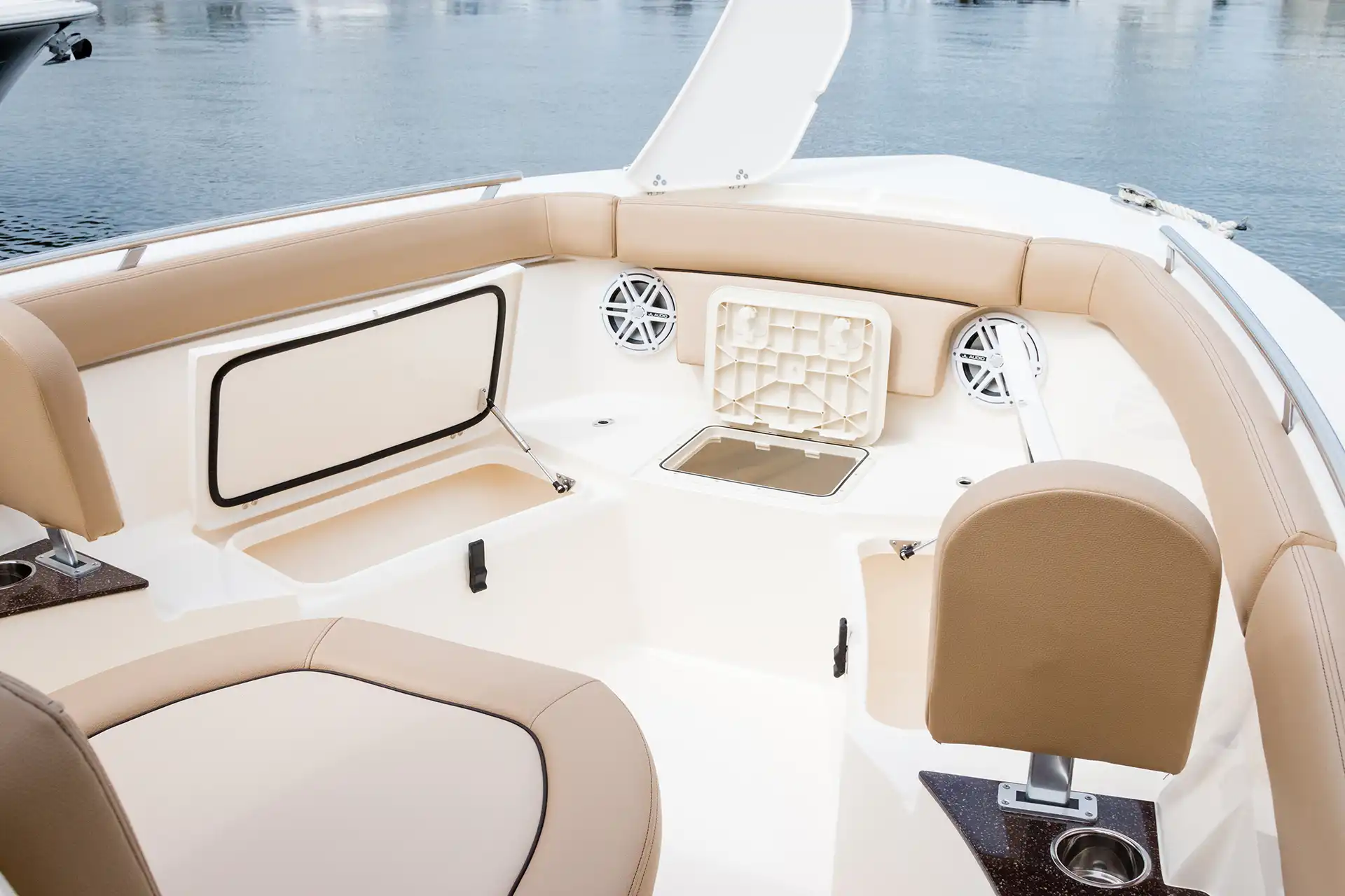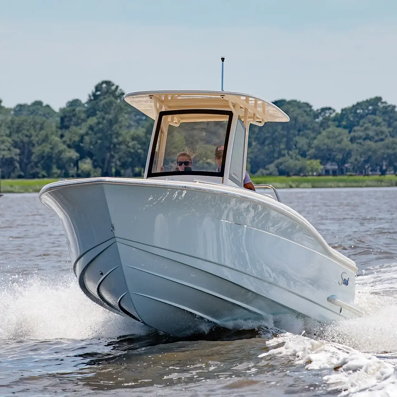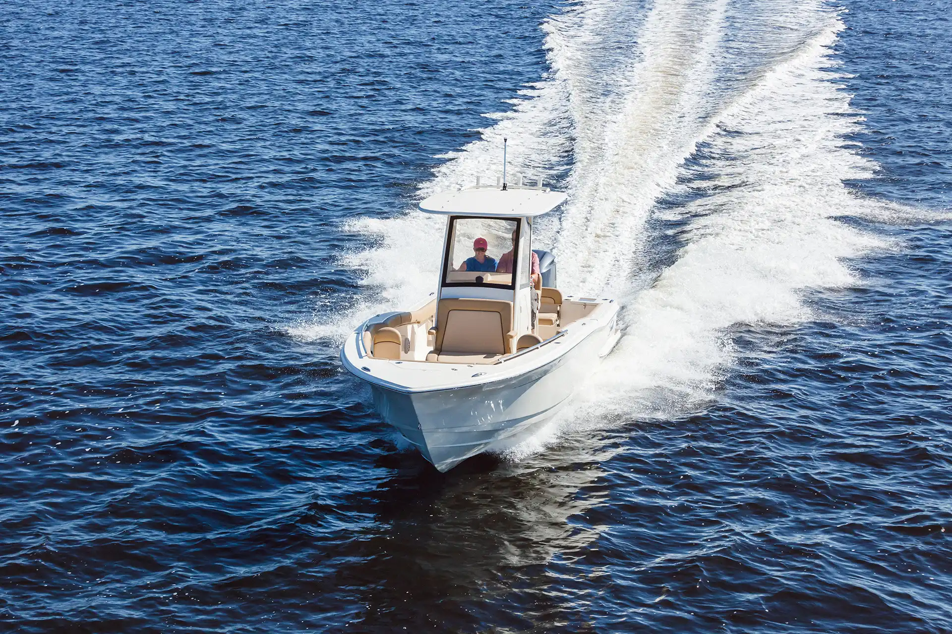 Sleek lines, innovation and high performance make this 240 XSF the hottest boat in its class. Built on our revolutionary NuV3 fuel efficient hull design, this forward seating center console model is ready for the open water, but will also save you money at the fuel pump. We’ve incorporated a longer outboard shaft so that we could do away with the transom splash well, creating a level full-access swim platform for safer access and use. LED lighting – including rope lighting and unique underside hardtop lights that are perfect for illuminating the boat during pre-dawn, dusk or night excursions – fold-away stern seat, aerated transom bait well, forward lounge seating with fish / storage box and overboard pump out, powder coated elite leaning post w/ cooler, rod and cup holders are just some of the numerous standard features available on this model.