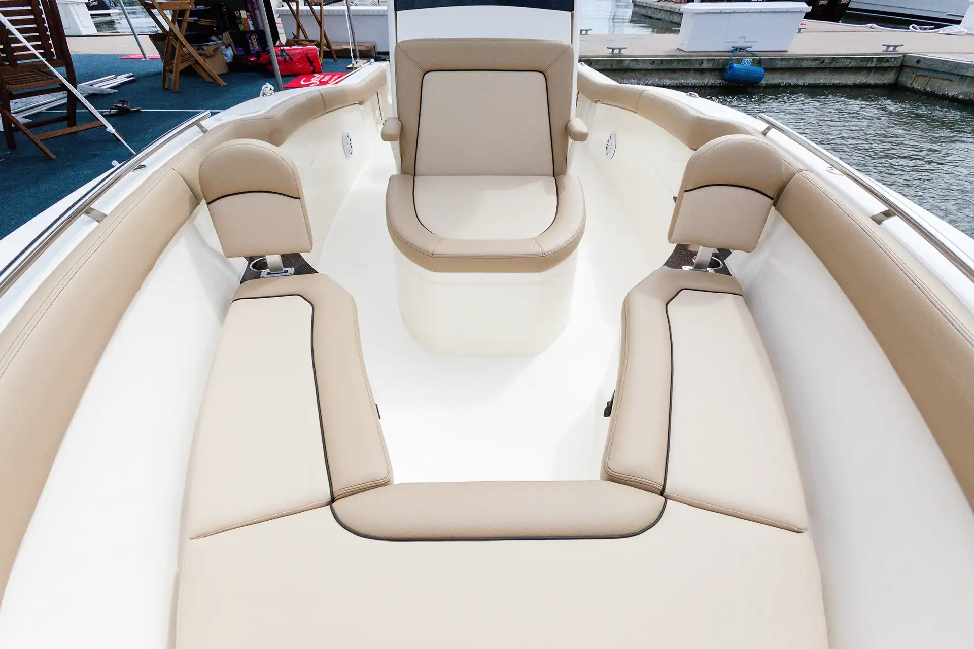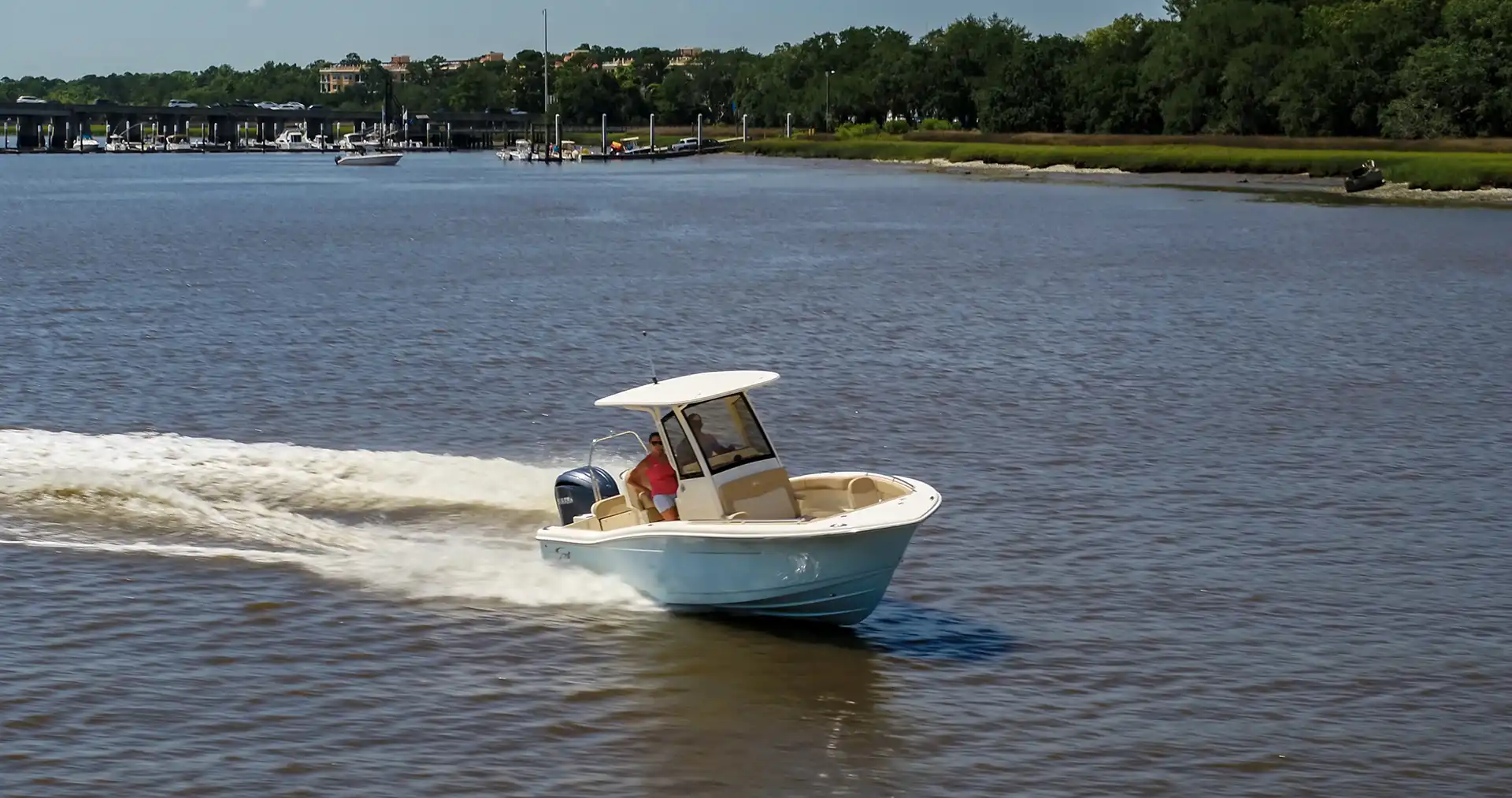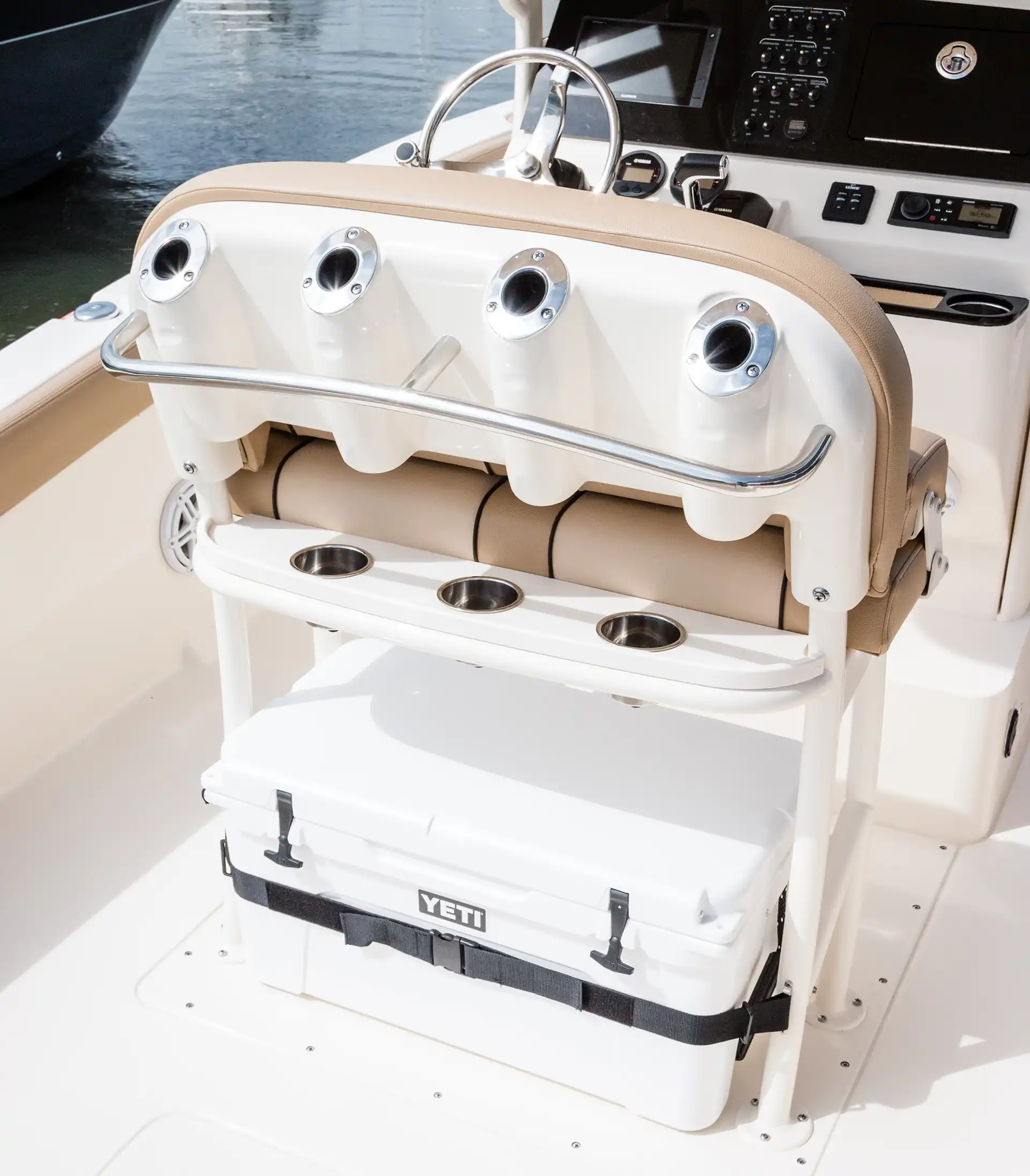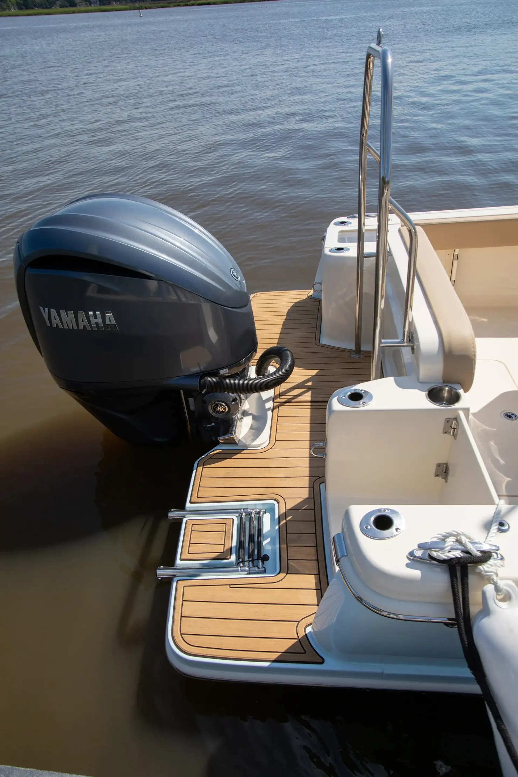 Sleek lines, innovation and high performance make this 240 XSF the hottest boat in its class. Built on our revolutionary NuV3 fuel efficient hull design, this forward seating center console model is ready for the open water, but will also save you money at the fuel pump. We’ve incorporated a longer outboard shaft so that we could do away with the transom splash well, creating a level full-access swim platform for safer access and use. LED lighting – including rope lighting and unique underside hardtop lights that are perfect for illuminating the boat during pre-dawn, dusk or night excursions – fold-away stern seat, aerated transom bait well, forward lounge seating with fish / storage box and overboard pump out, powder coated elite leaning post w/ cooler, rod and cup holders are just some of the numerous standard features available on this model.